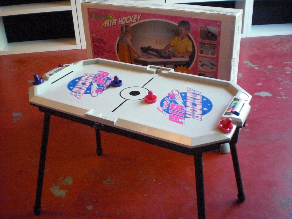 CA aria tavolo hockey con sensore elettronico e suono elettronico. Ventilatore ad alta velocità. Escluse le batterie (6 x 1,5 V AA), con adattatore.