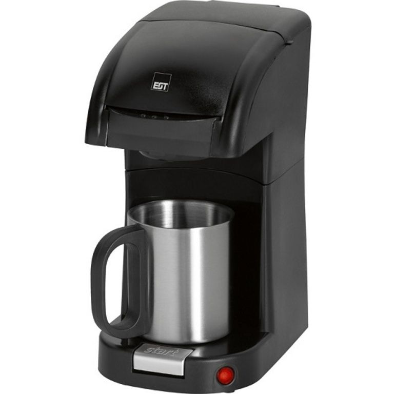 Una macchina cialde è semplice, veloce e fresco - con il gusto familiare di un caffè aromatico filtro. Ideale per il campeggio, in ufficio oa casa inc. Tazza termica in acciaio inox adatto per veicoli commerciali caffè estraibile titolare caffè interruttore on / off Caratteristiche tecniche Alimentazione: 230 V, 50 Hz Potenza assorbita: 550 Watt Colore: Nero Dimensioni (LxAxP): 110 x 225 x 195 mm Peso: 1 kg