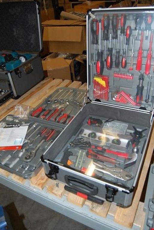 Bella alluminio Trolly è completamente riempito con 186 utensili pezzo. Strumenti di qualità: cromo vanadio.