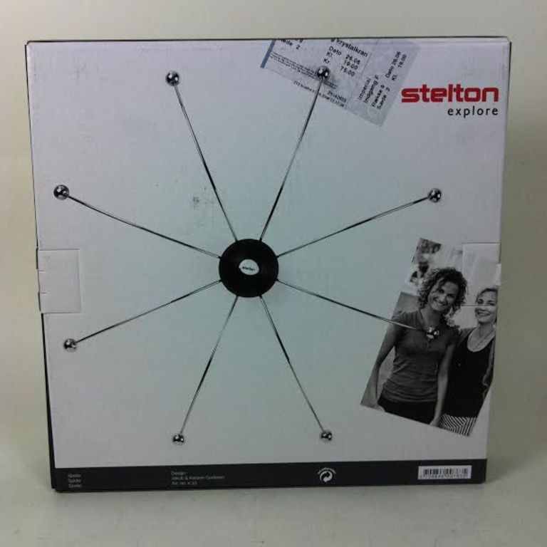 Il ragno può essere montato con una vite sulle superfici in cui i magneti non funzionano. Colore nero. Progettare Jacob & Karsten Gudiksen. Materiale: acciaio inossidabile, plastica.