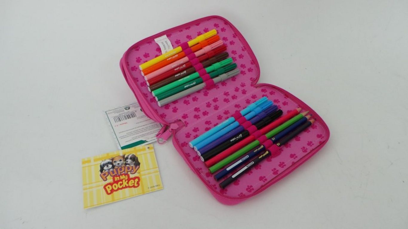 Contenuti includono Pennarelli, matite, gomma, righello, ecc pountenslijper