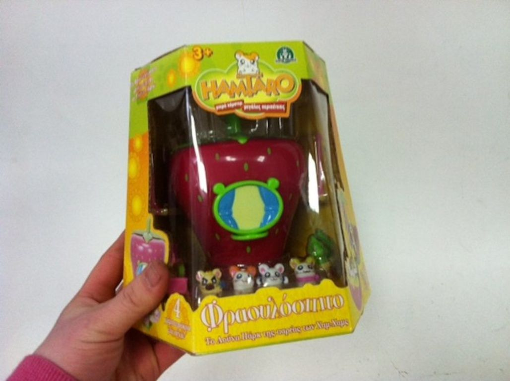 Float Carousel a forma di una fragola, una volta che lo si apre, c'è una giostra trovi Con molte figure e accessori.