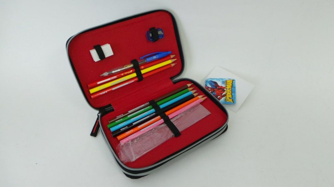 Contenuti includono Pennarelli, matite, gomma, righello, ecc pountenslijper