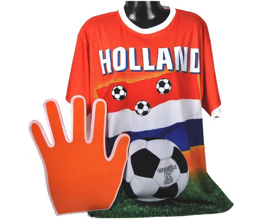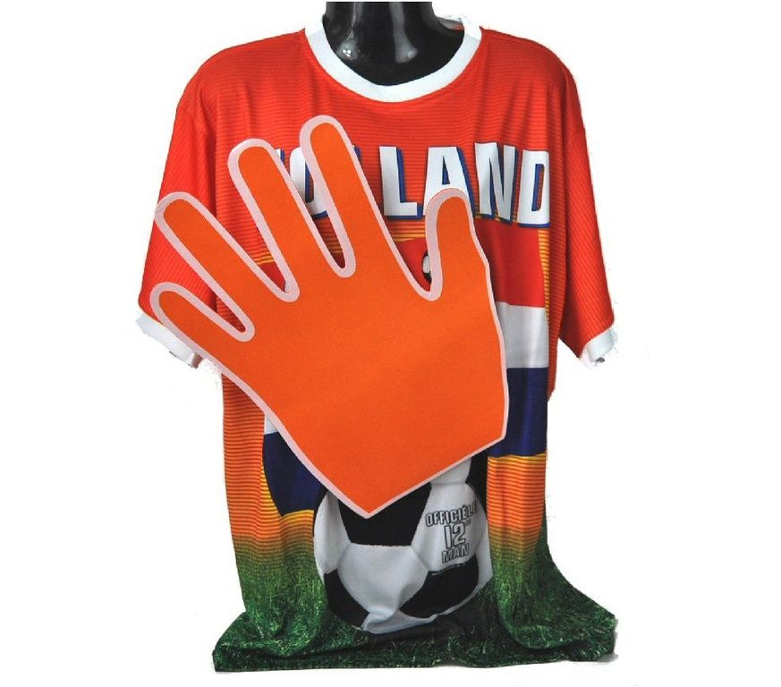 T-shirt con stampa allegra calcio olandese. La mano è dotato di velcro, in modo da attaccare ai vestiti.