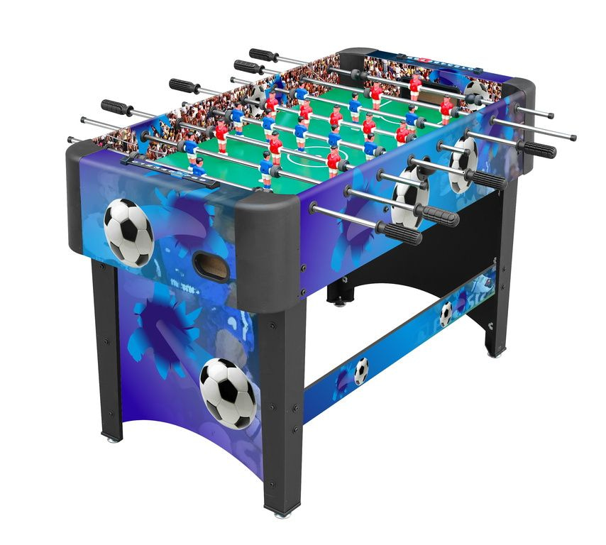 Un calcio balilla dotato di barre di acciaio duro scorrevoli.