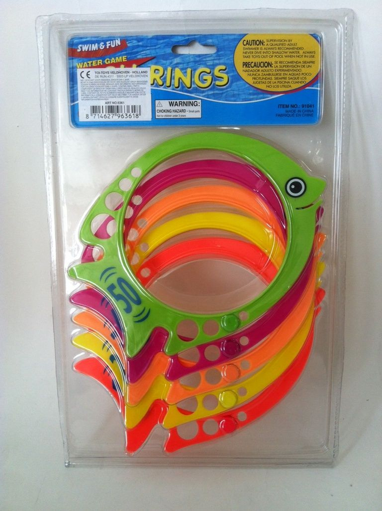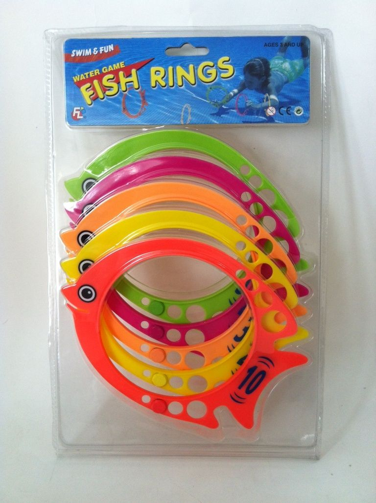 Gettare il pesce in acqua o il nuoto e le immersioni loro. Ogni anello pesce presenta punti. Per le ore di divertimento in piscina.