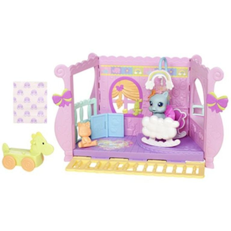 Cura per la piccola Rainbow Dash baby pony. Le piace giocare nella sua stanza, poi di andare a dormire bene nella sua culla. A partire da 3 anni.
