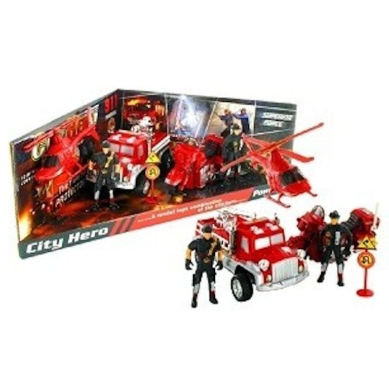 Gioco fuoco dura set composto da: motore di fuoco, motore, elicotteri, vigile del fuoco e molti accessori.