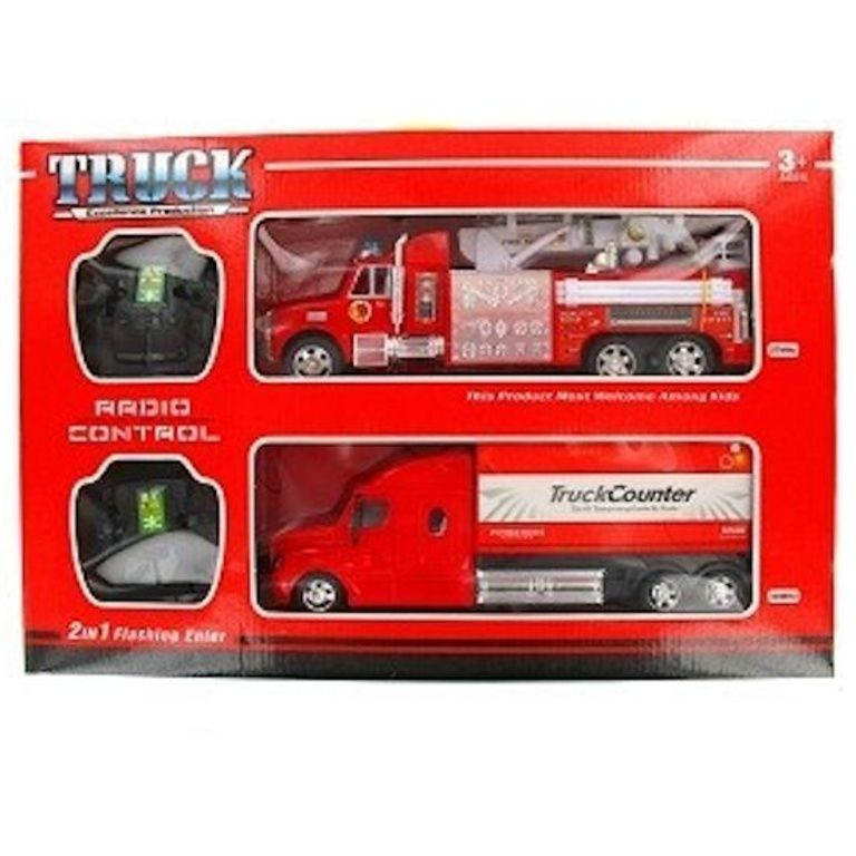 Due camion radiocomandati, 1x e 1x Fuoco camion. Disporli su due canali e razza diversa contro l'altro.