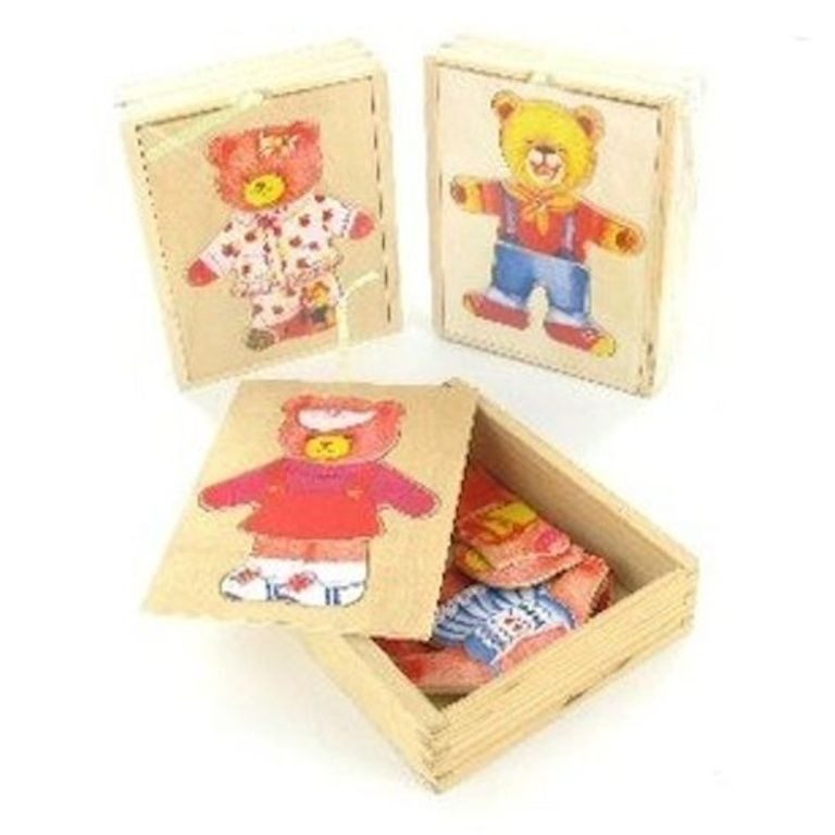 Scatola di legno (12 x 14 cm.) Con 6 pezzi di legno in modo che possa essere. 'S viso e vestiti dell'orso cambiato