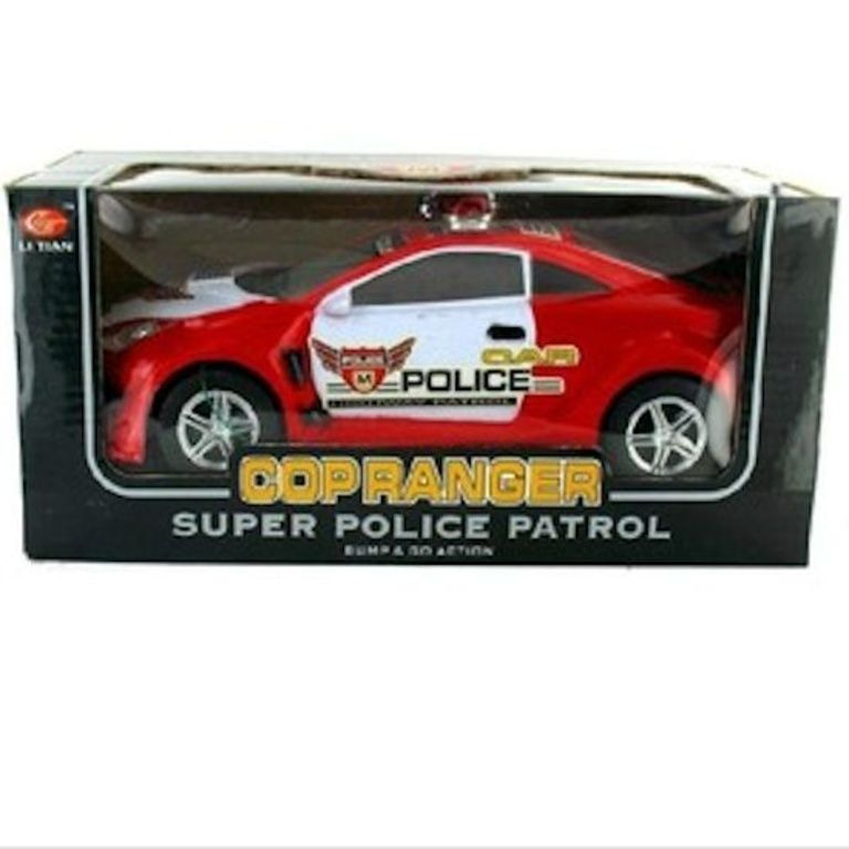 Questa macchina della polizia si guida da sola in giro, una volta che ha colpito qualcosa di bot che guida il contrario. con luce e suono.