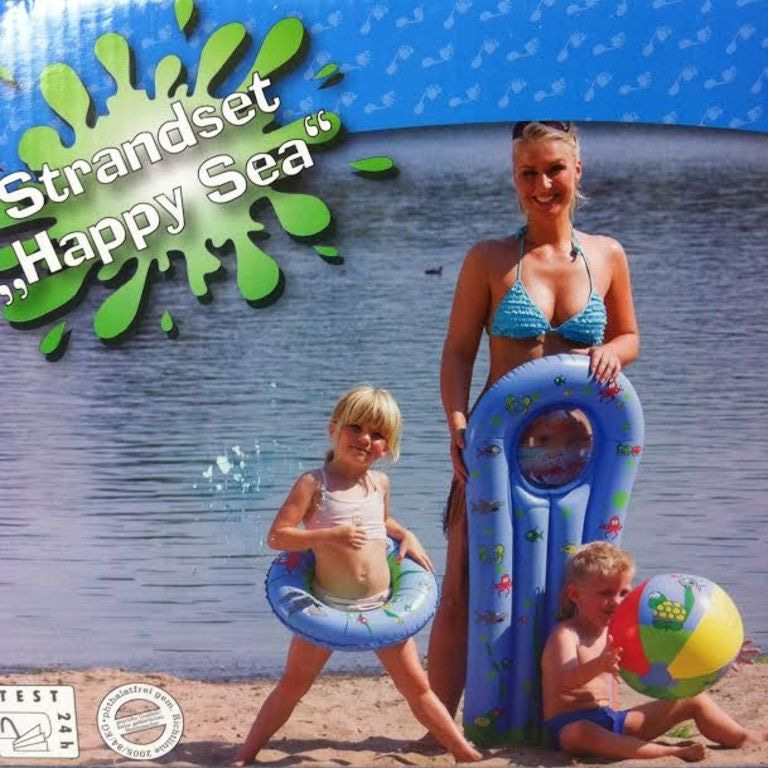 Materasso ad aria, pallone da spiaggia e l'anello gonfiabile.