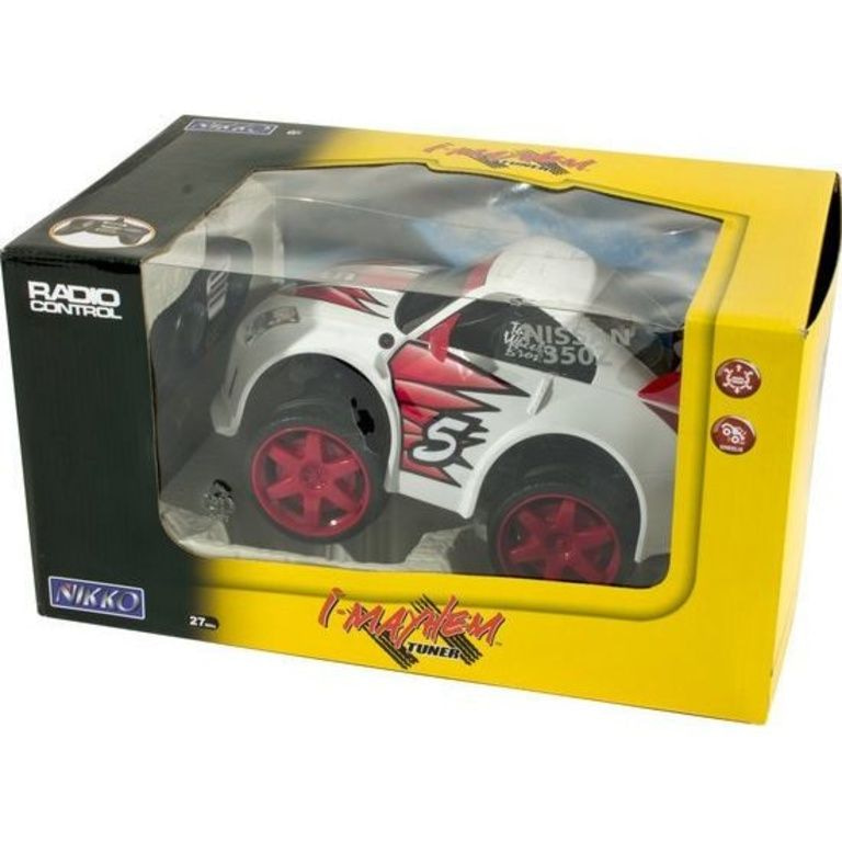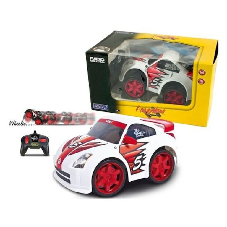Auto Nikko Radio Wheelie Bros. Nissan. Questa vettura robusta può fare Wheelies veri! Frequenza RF di 40 MHz, con funzioni di guida complete. Batterie incluse (1x 9V e 4x 1,5 V AA batterie). Confezionato in un windowbox.