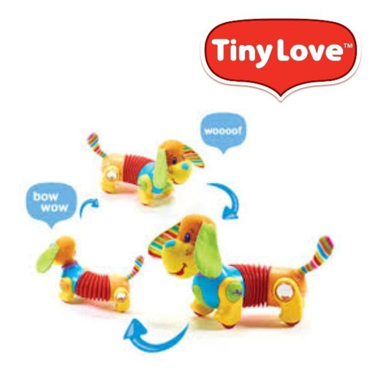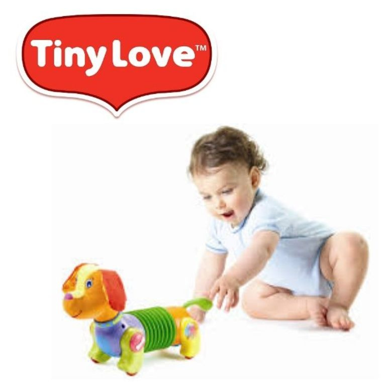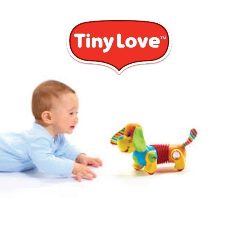 Follow Me Fred Tiny Love possiede anche musica e varie attività. Piccolo Amore Follow Me Fred è un cane che aiuta nello sviluppo del bambino. Nella sua gamba sedersi perle che Rattle quando il cane si muove.