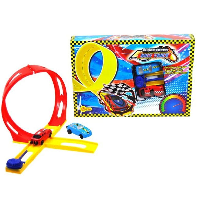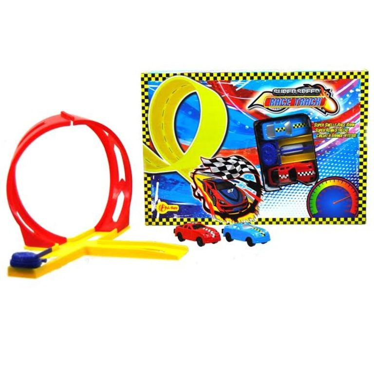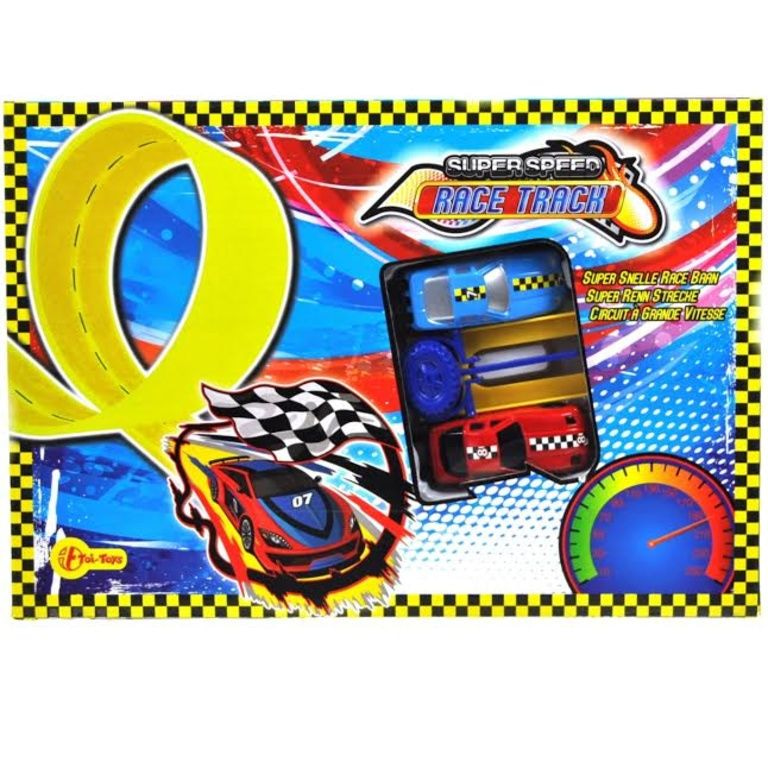 Bella gara confezionato in una bella scatola. La pista si compone di 5 parti e due auto. Mettere insieme la pista e le vetture e abbattere.