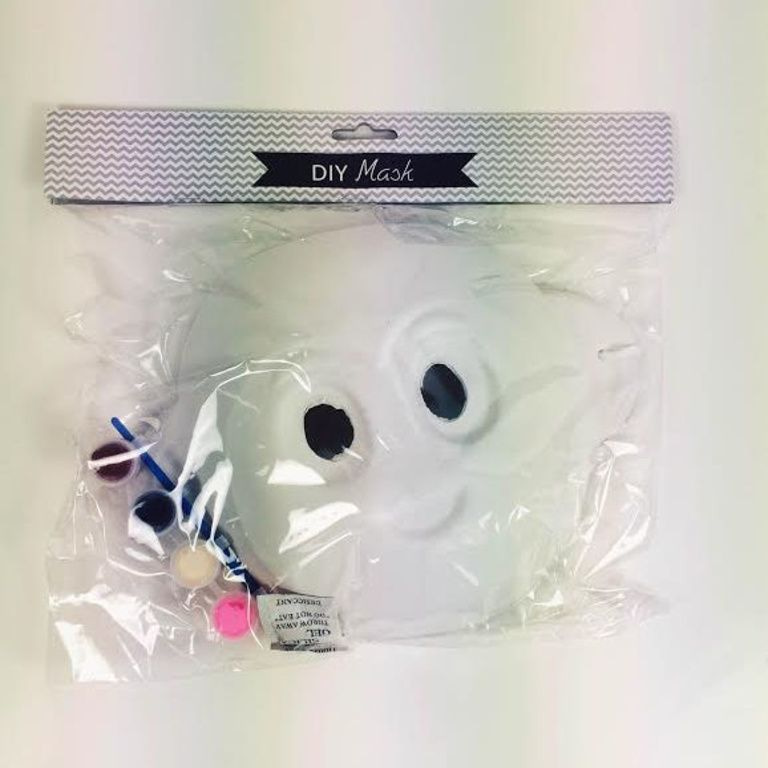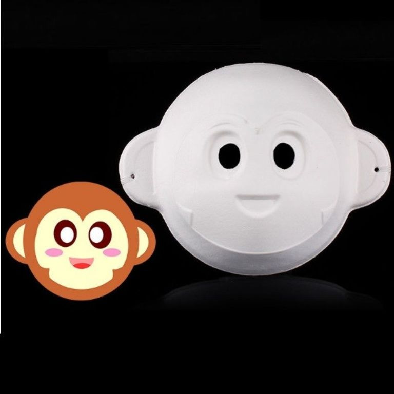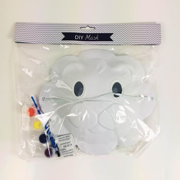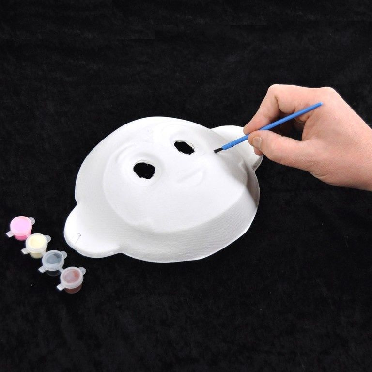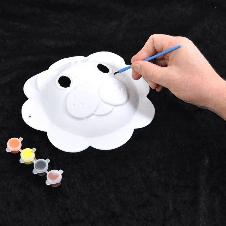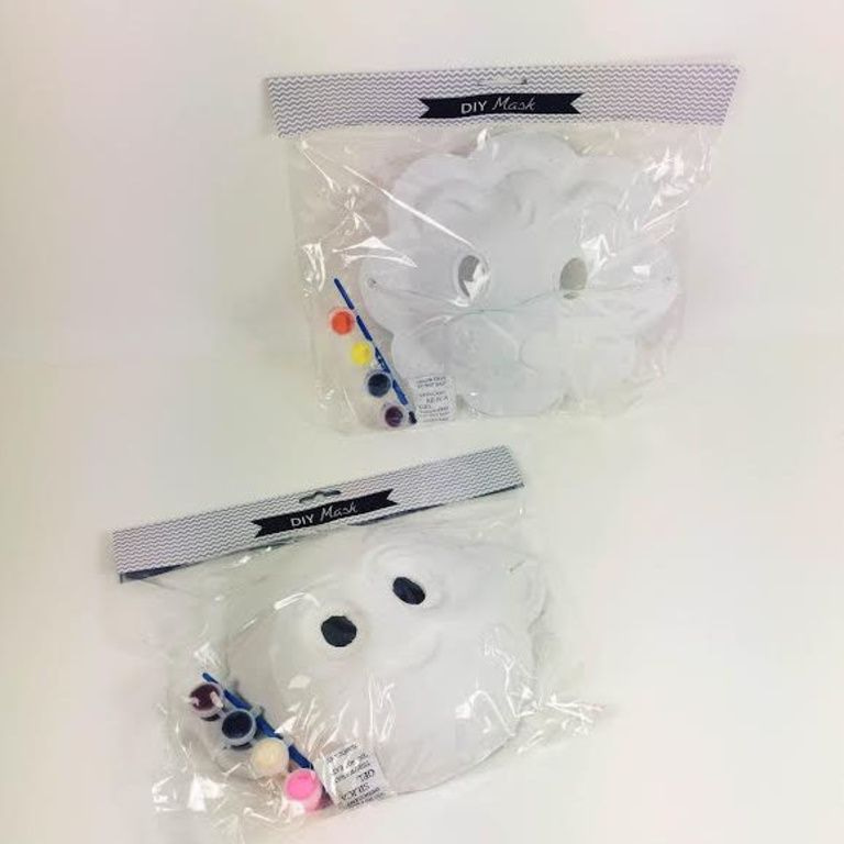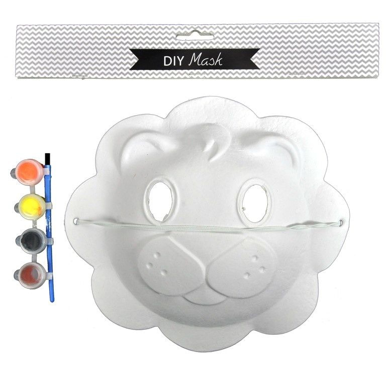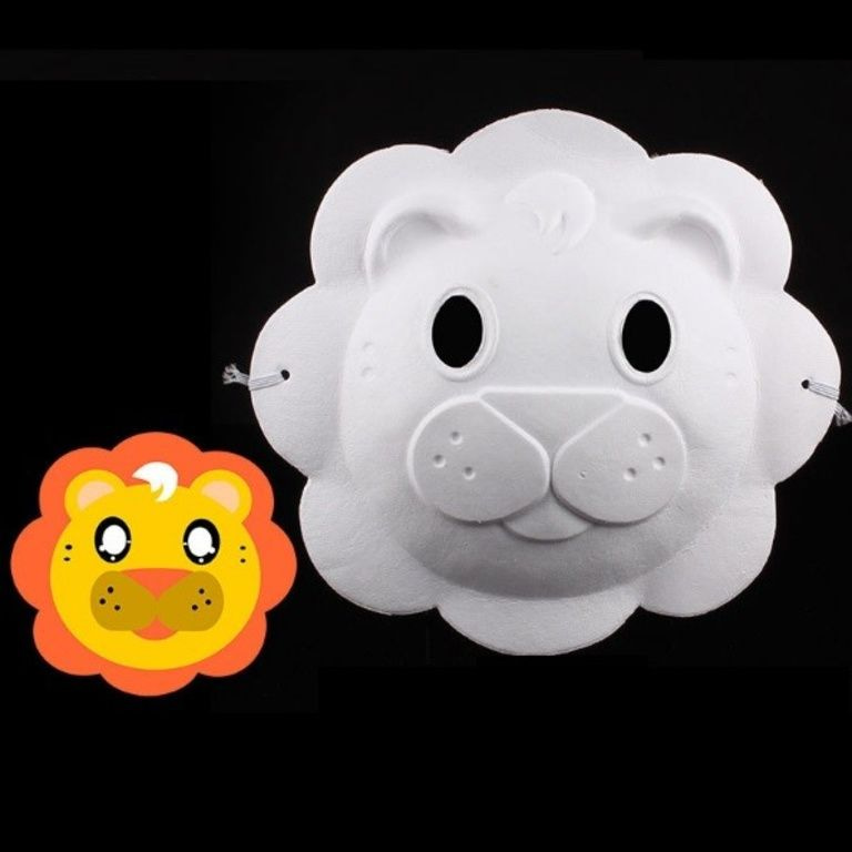 Carino grandi maschere di animali per i bambini. Queste maschere sono di colore bianco e sono dotati di quattro colori di vernice e un pennello. Così i vostri animali si possono mascherare sé vernici, e si ha la propria maschera unica.