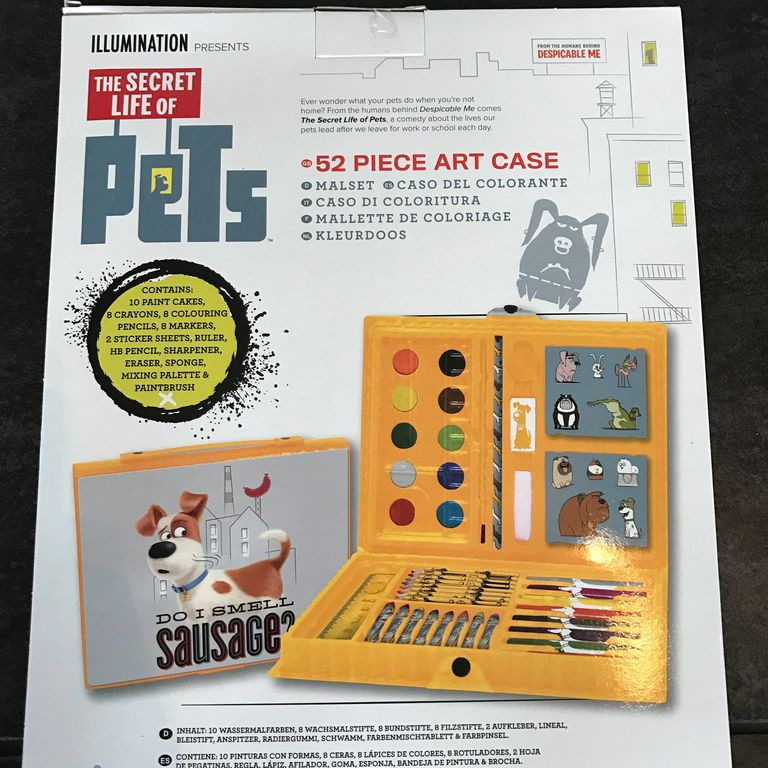 Questa scatola di colore si compone di 52 pezzi, matite, pennarelli, pastelli, pennarelli, temperamatite e adesivi matita, ecc imballato in una custodia.