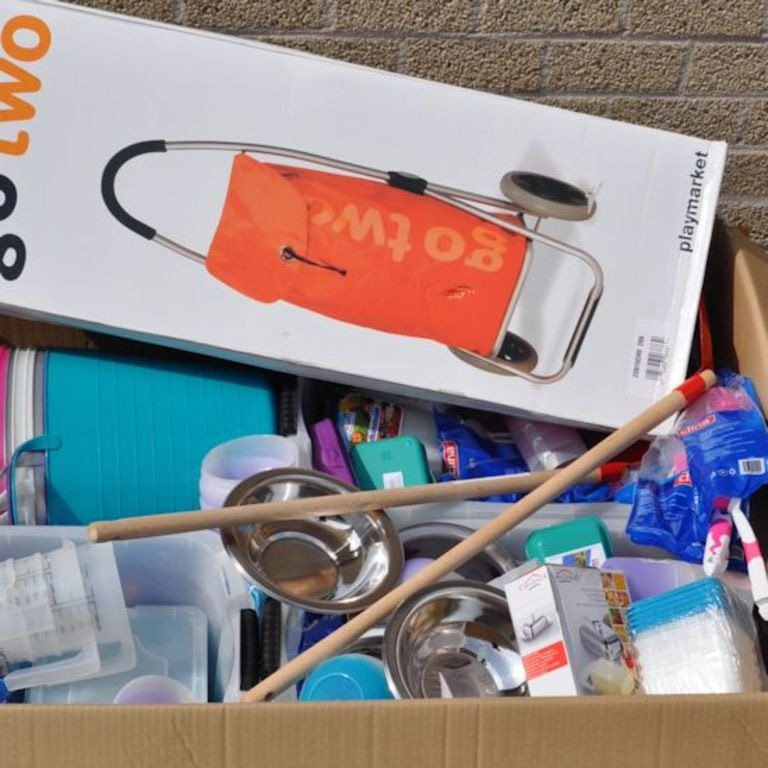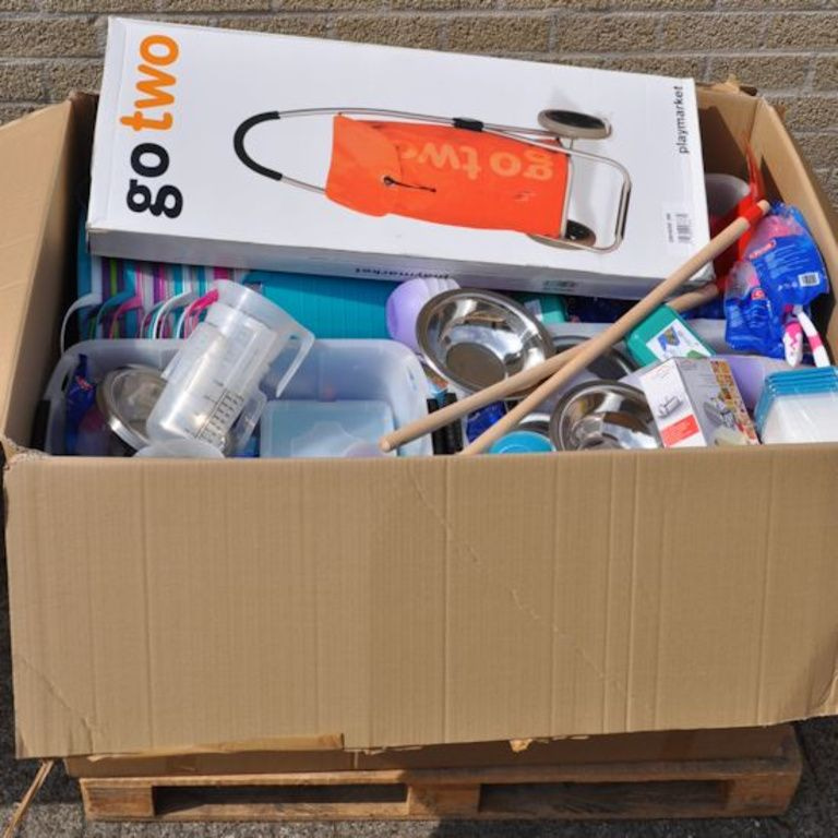 Questa scatola pallet contiene: Oa Casalinghi, giocattoli, utensili, articoli per ufficio, ecc