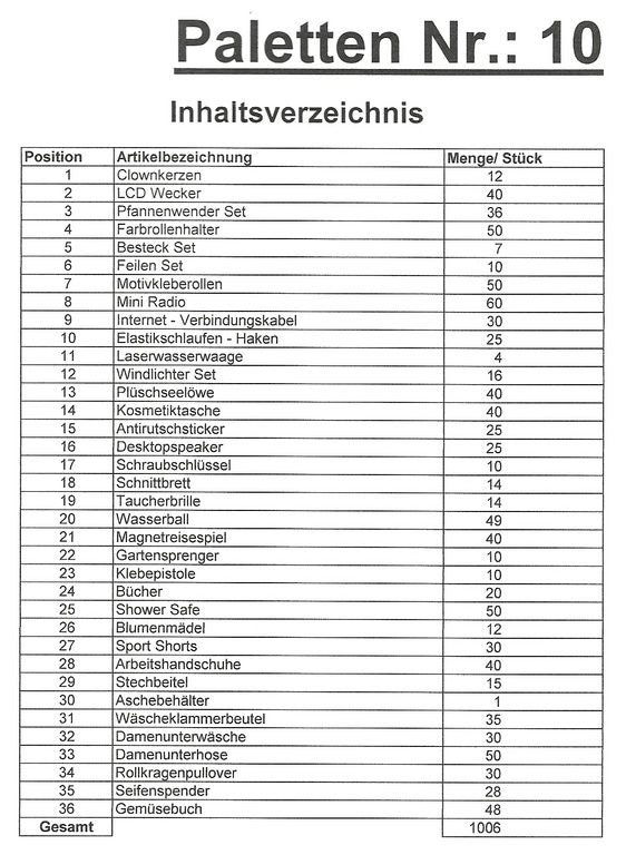Contenuto pallet: 1.006 articoli St. diversi!