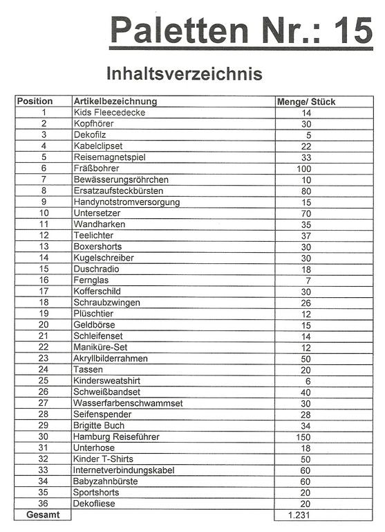 Contenuto pallet: 1.231 articoli St. diversi!