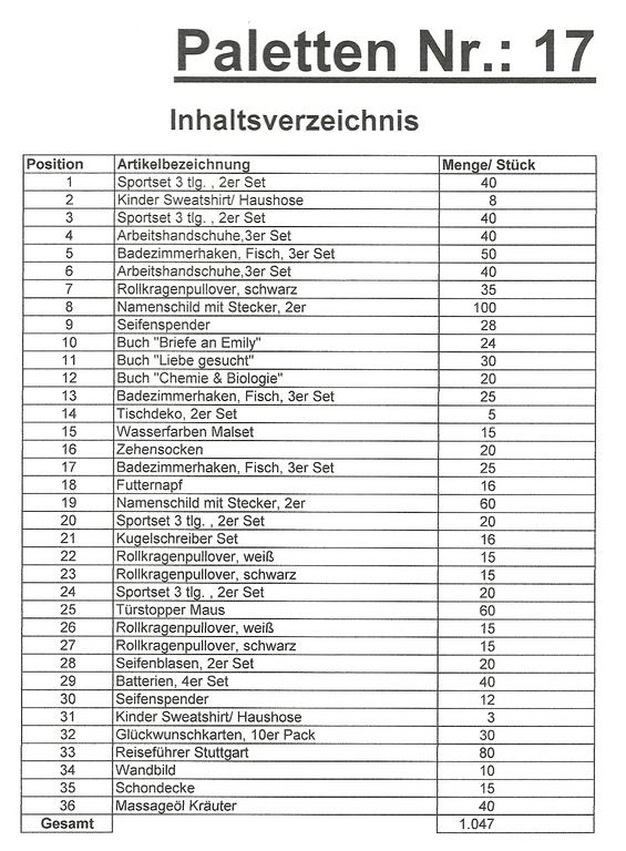 Contenuto pallet: 1.047 articoli St. diversi!