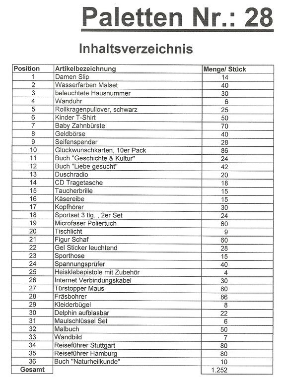 Contenuto pallet: 1.252 articoli St. diversi!