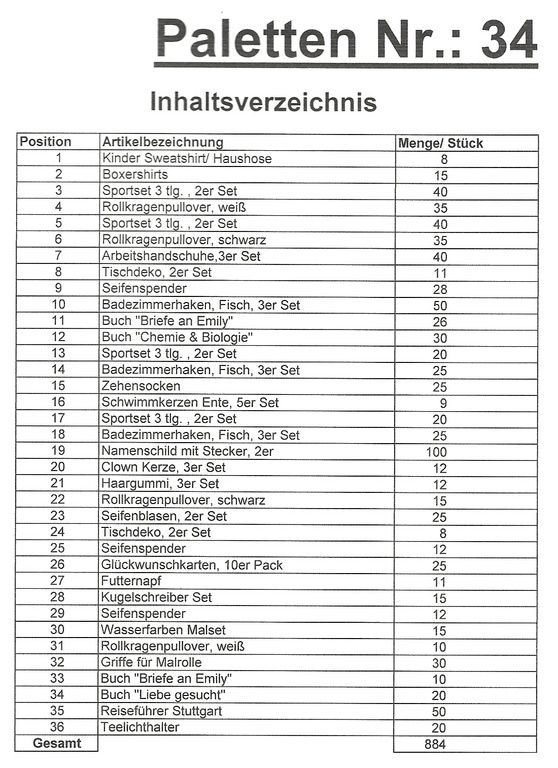 Contenuto pallet: 884 articoli St. diversi!