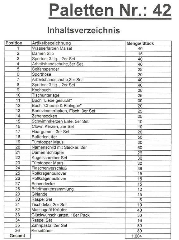 Contenuto pallet: 1.004 articoli St. diversi!