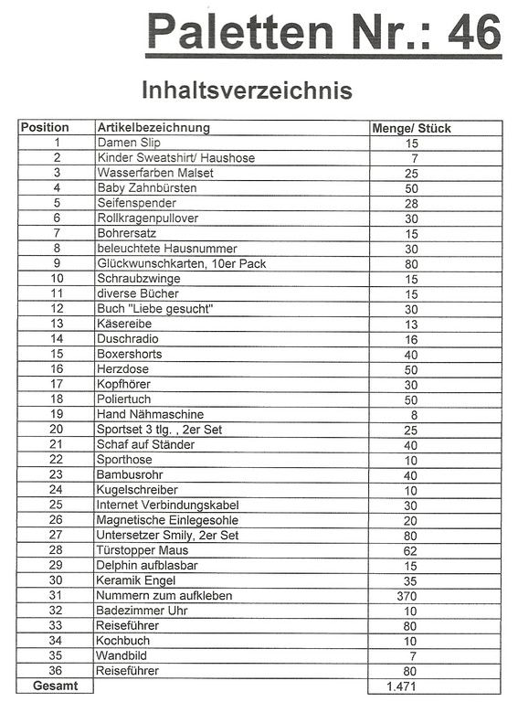 Contenuto pallet: 1.471 articoli St. diversi!
