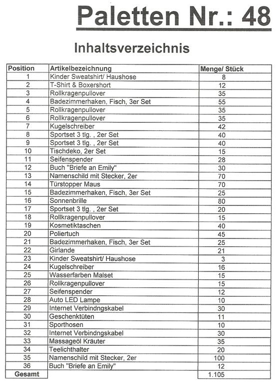 Contenuto pallet: 1.105 articoli St. diversi!