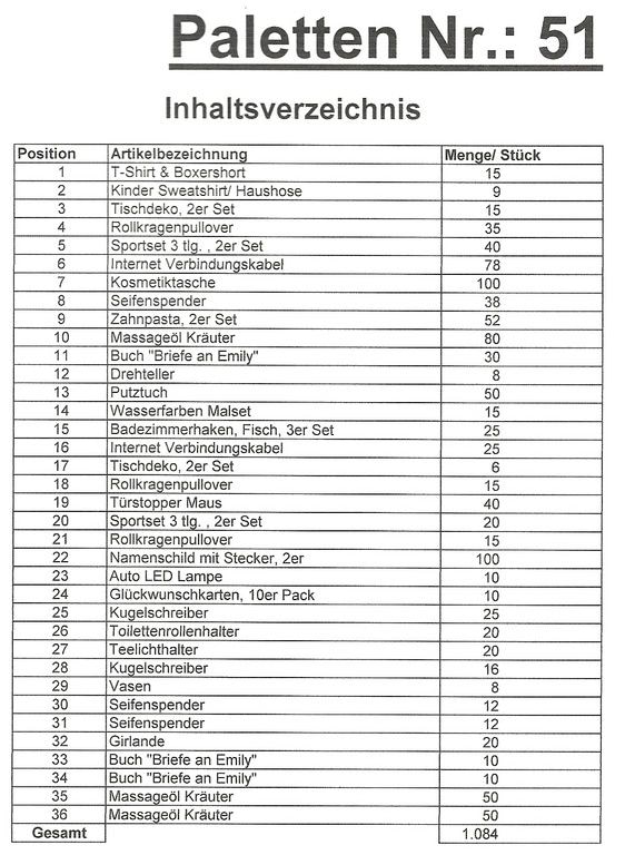 Contenuto pallet: 1.084 articoli St. diversi!