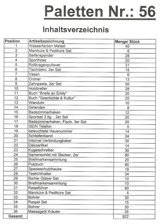 Contenuto pallet: 922 articoli St. diversi!
