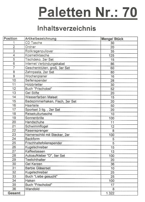 Contenuto pallet: 1.322 articoli St. diversi!