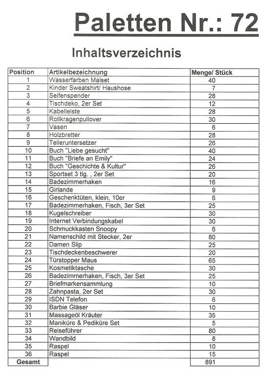 Contenuto pallet: 891 articoli St. diversi!