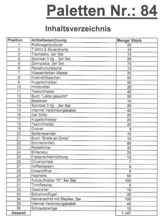 Contenuto pallet: 1.147 articoli St. diversi!