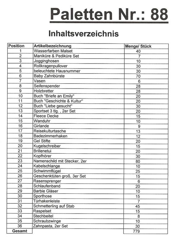 Contenuto pallet: 779 articoli St. diversi!