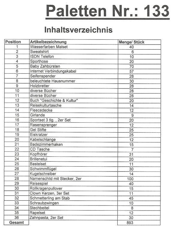 Contenuto pallet: 893 articoli St. diversi!