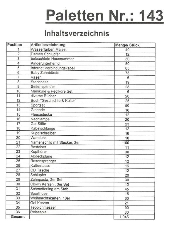 Contenuto pallet: 1.045 articoli St. diversi!