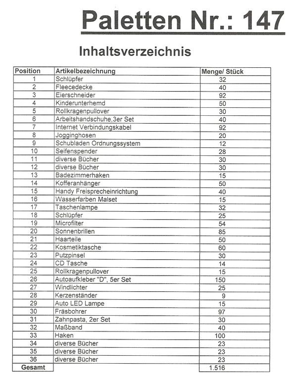Contenuto pallet: 1.516 articoli St. diversi!