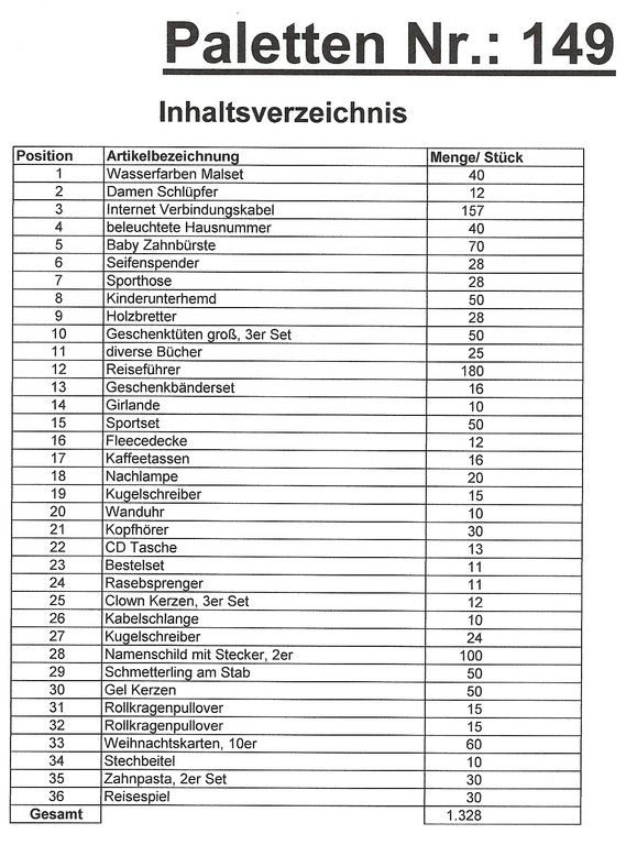 Contenuto pallet: 1.328 articoli St. diversi!