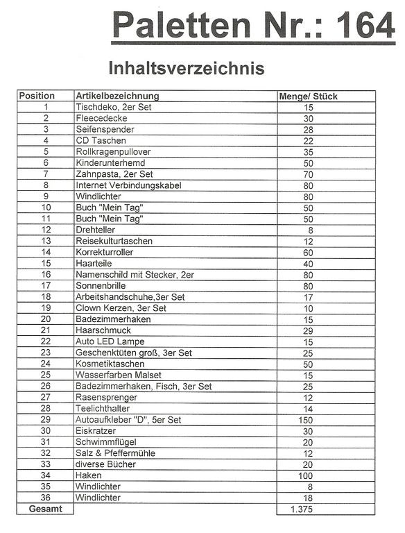 Contenuto pallet: 1.375 articoli St. diversi!