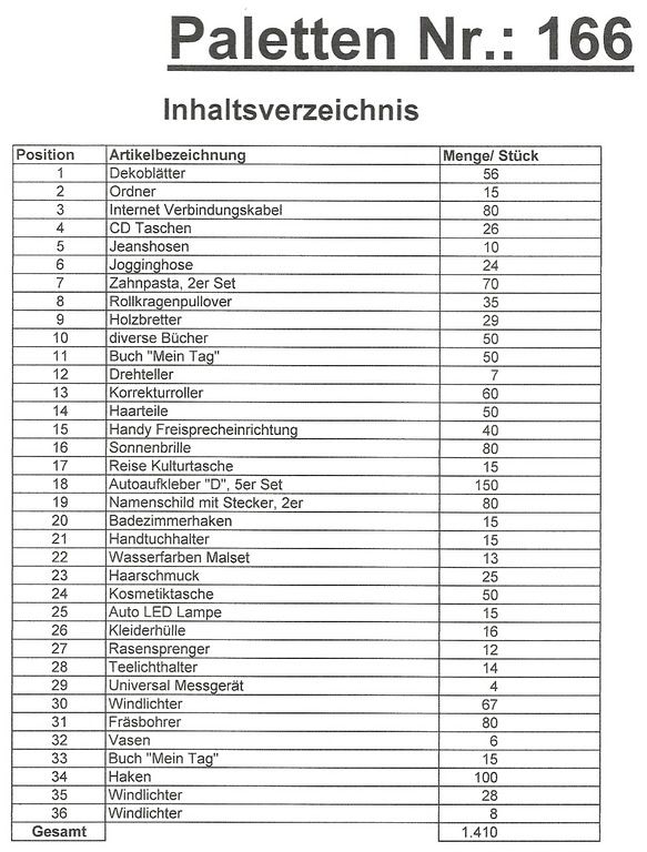 Contenuto pallet: 1.410 articoli St. diversi!