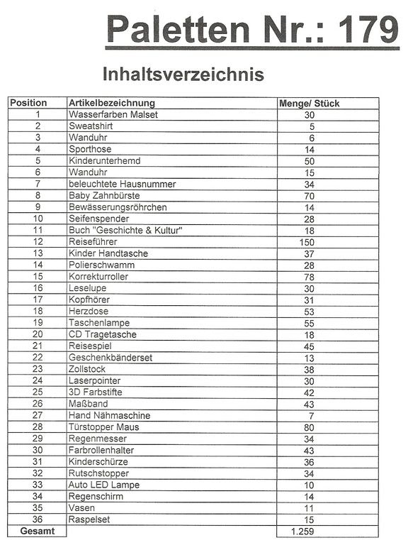 Contenuto pallet: 1.259 articoli St. diversi!