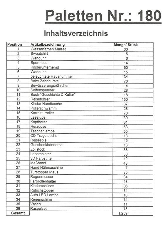 Contenuto pallet: 1.259 articoli St. diversi!