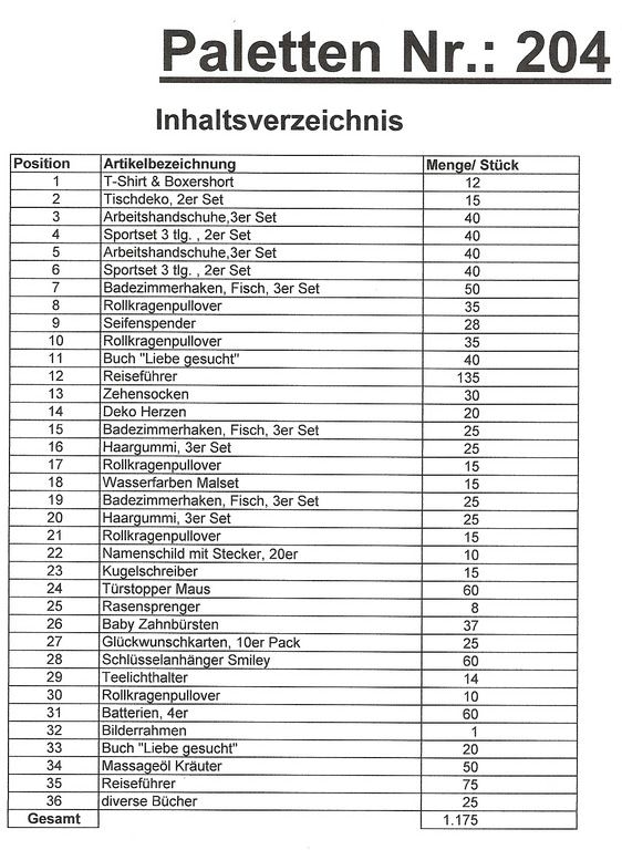 Contenuto pallet: 1.175 articoli St. diversi!