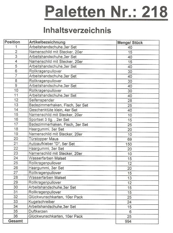 Contenuto pallet: 994 articoli St. diversi!