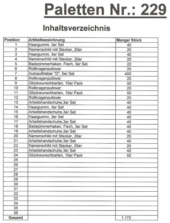 Contenuto pallet: 1.172 articoli St. diversi!